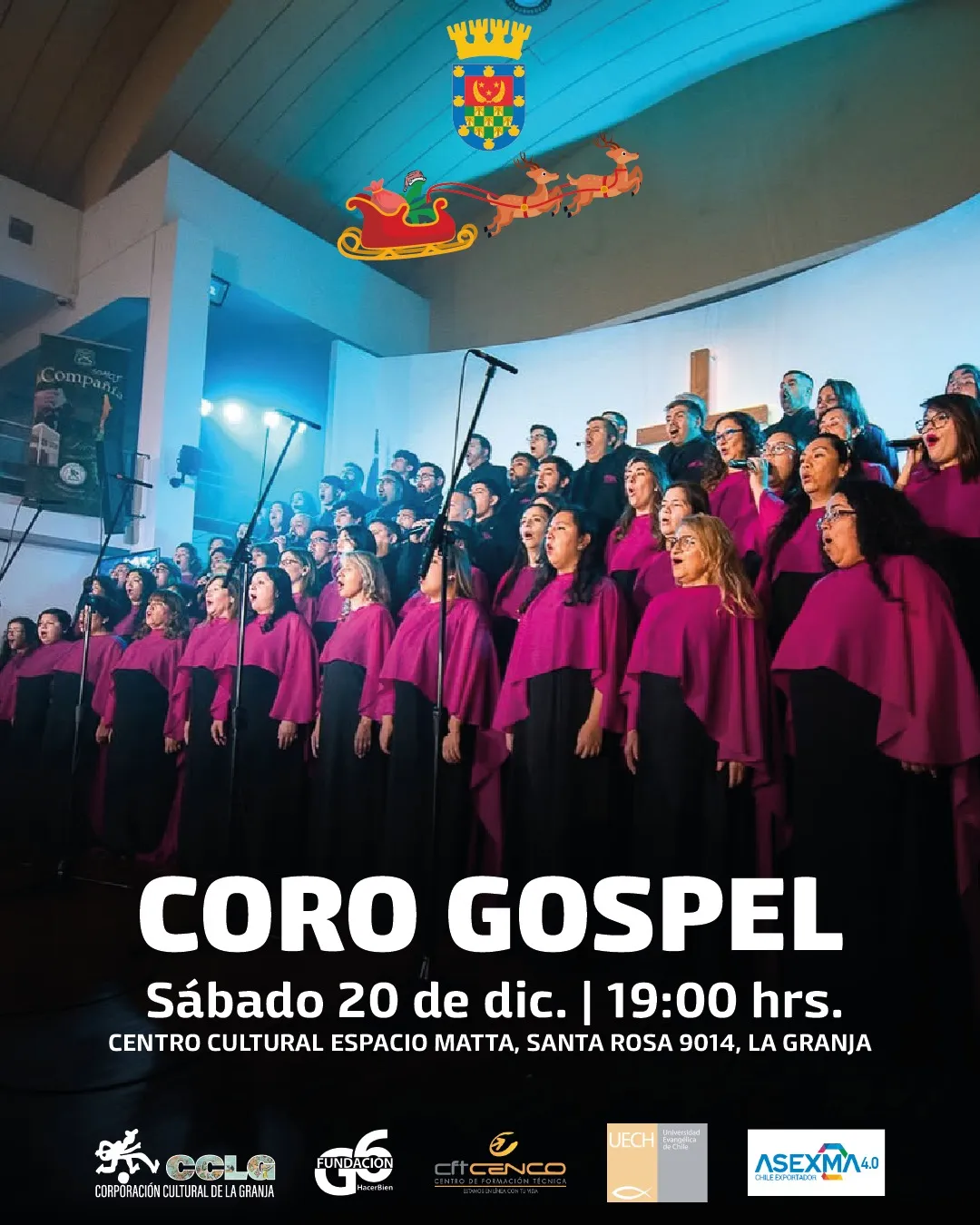 Espacio Matta AV. Santa Rosa Nº 9014, La Granja, Santiago, ChileTe invitamos a disfrutar de una noche llena de emoción, esperanza y espíritu navideño con el Coro Tabernáculo, una gran agrupación coral con cerca de 100 voces que llegan a Espacio Matta para compartir un concierto único Este coro, dirigido por Juan Eliseo Gajardo, reúne a cantantes de distintas edades y comunidades, y destaca por su […]