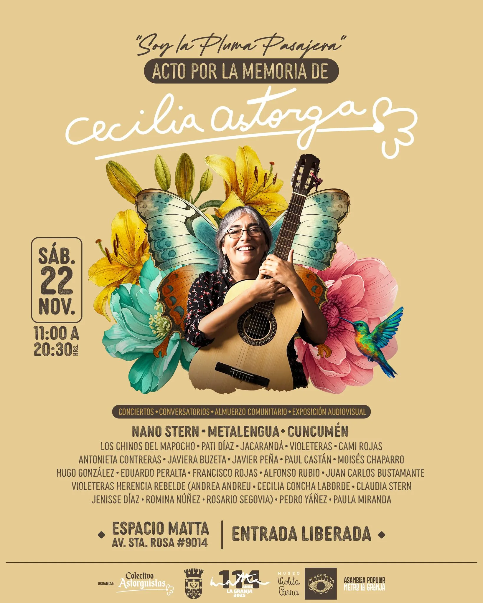 📍 En el Acto por la Memoria “Soy la Pluma Pasajera”, compartiremos una jornada llena de conciertos, arte y conversatorios 🙌🍲.